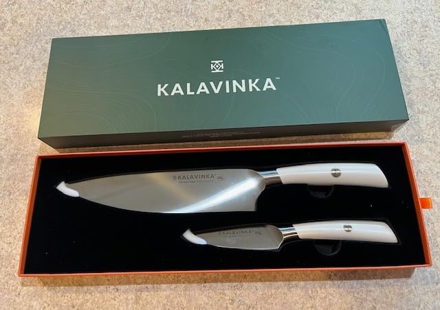I ordered this knife two pack because I was tired of trying to use and periodically sharpen our dull set - as it turns out that ordering this brand new set was exactly what we needed.They have a nice heft to them that makes them feel solid in your hand and quality.They are SOOOOOO sharp that we've definitely cut a few new marks in our cutting boards.They are usually the first knifes I reach for on my block.Overall a great purchase and I highly recommend.